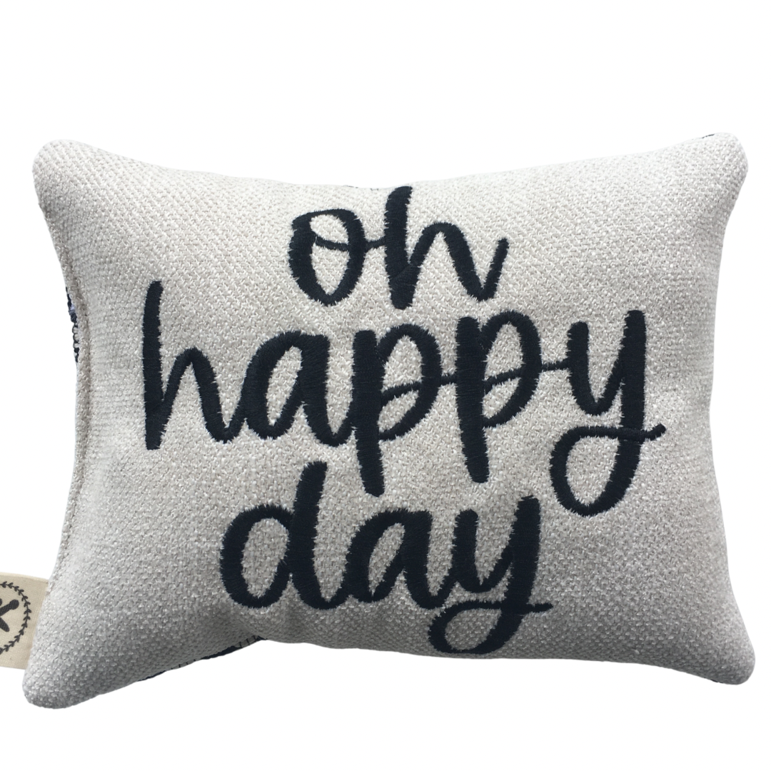 This small embroidered pillow is the perfect addition to any home or office! It features a black embroidered message that reads “oh happy day.” The cheerful message makes it a great pick-me-up for any space. It’s a great way to spread positive energy and brighten up any space.